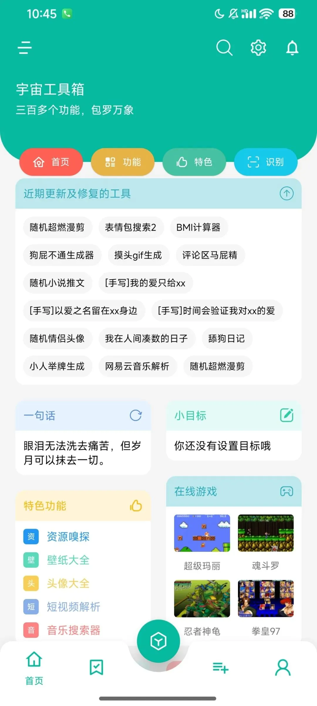 除了工作学习,这玩意儿还能用来摸鱼。内置了小霸王游戏合集,像魂斗罗、超级玛丽这些童年回忆,随时随地都能搓两把,还有人生重开模拟器这种解压小游戏,不得不说,开发者是真懂我们的心。
