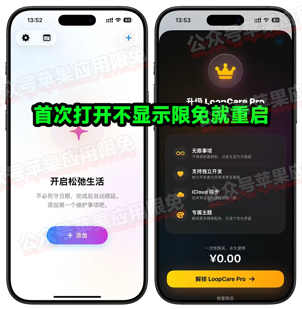 一款提醒软件,目前可以免费获取它的终身订阅,打开软件从设置进入内购,一次性显示0即可免费获取,首次打开不显示就重启!设备需装有 iOS 17 或更高版本。
