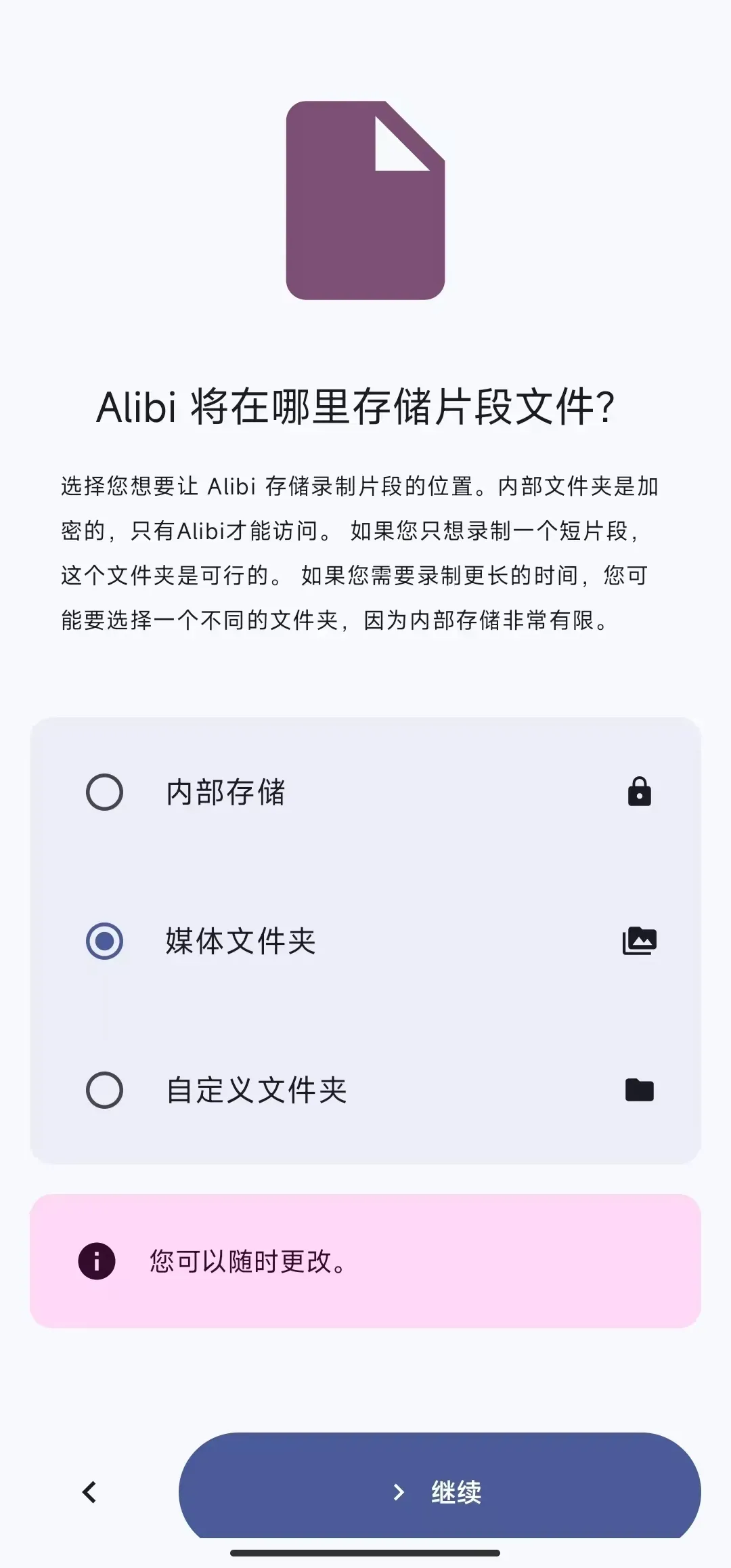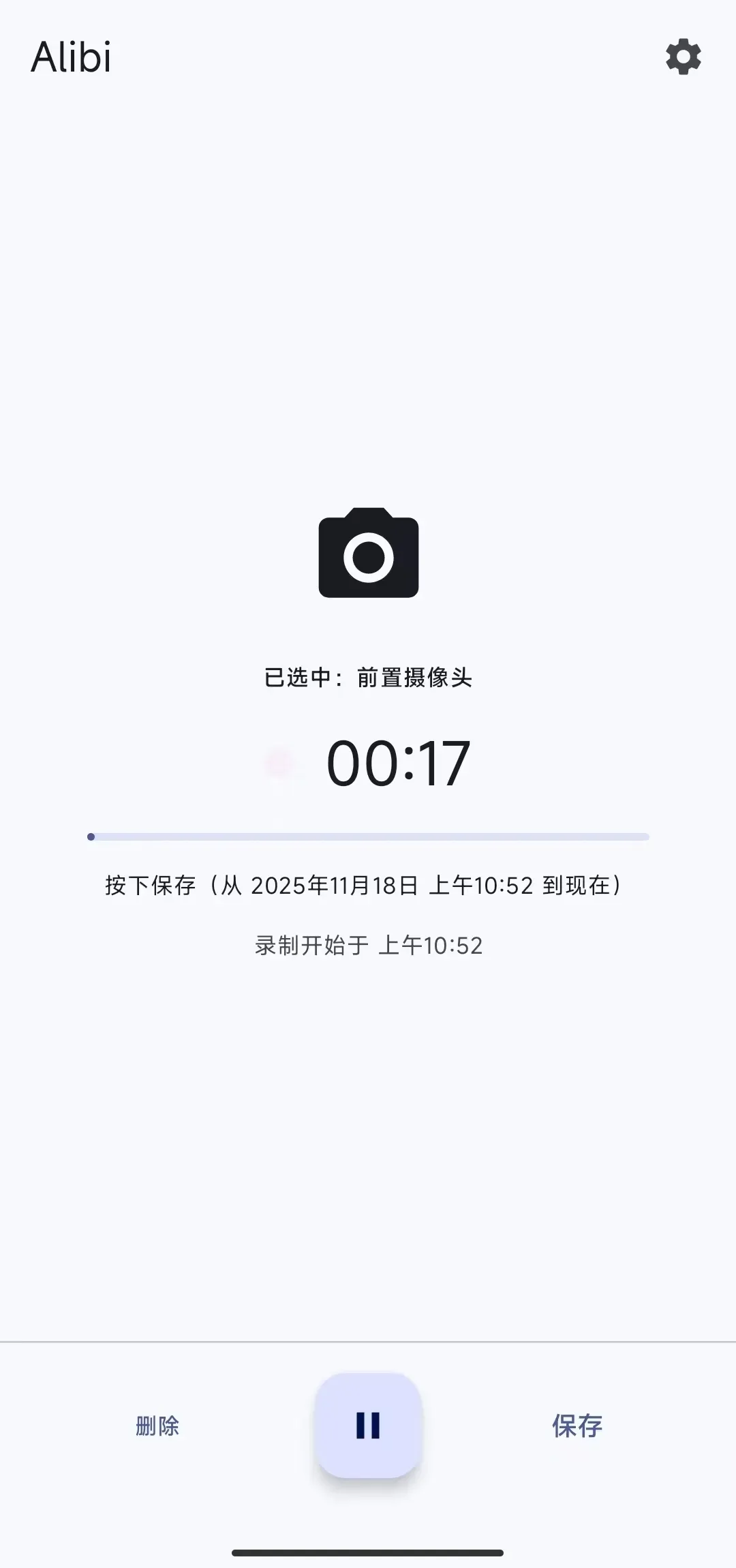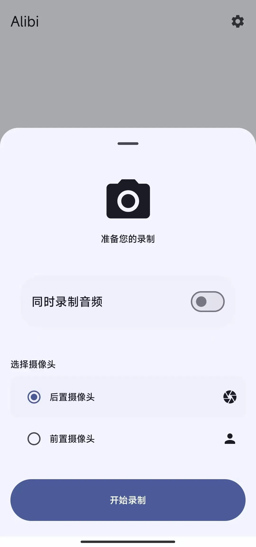 录制前的准备也很简单,只需选择切换前置或后置摄像头,选好后就能启动录制。最让人省心的是,哪怕手机息屏锁屏,Alibi 也会在后台默默工作,完全不影响录制进程,不会因为误触锁屏中断记录。