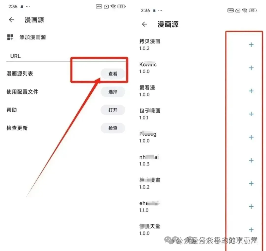 这边点击【查看】按钮,然后选择+号把需要的漫画源一个个添加即可。软件支持多平台、多终端,无论是电脑,还是安卓、苹果ios都能上车