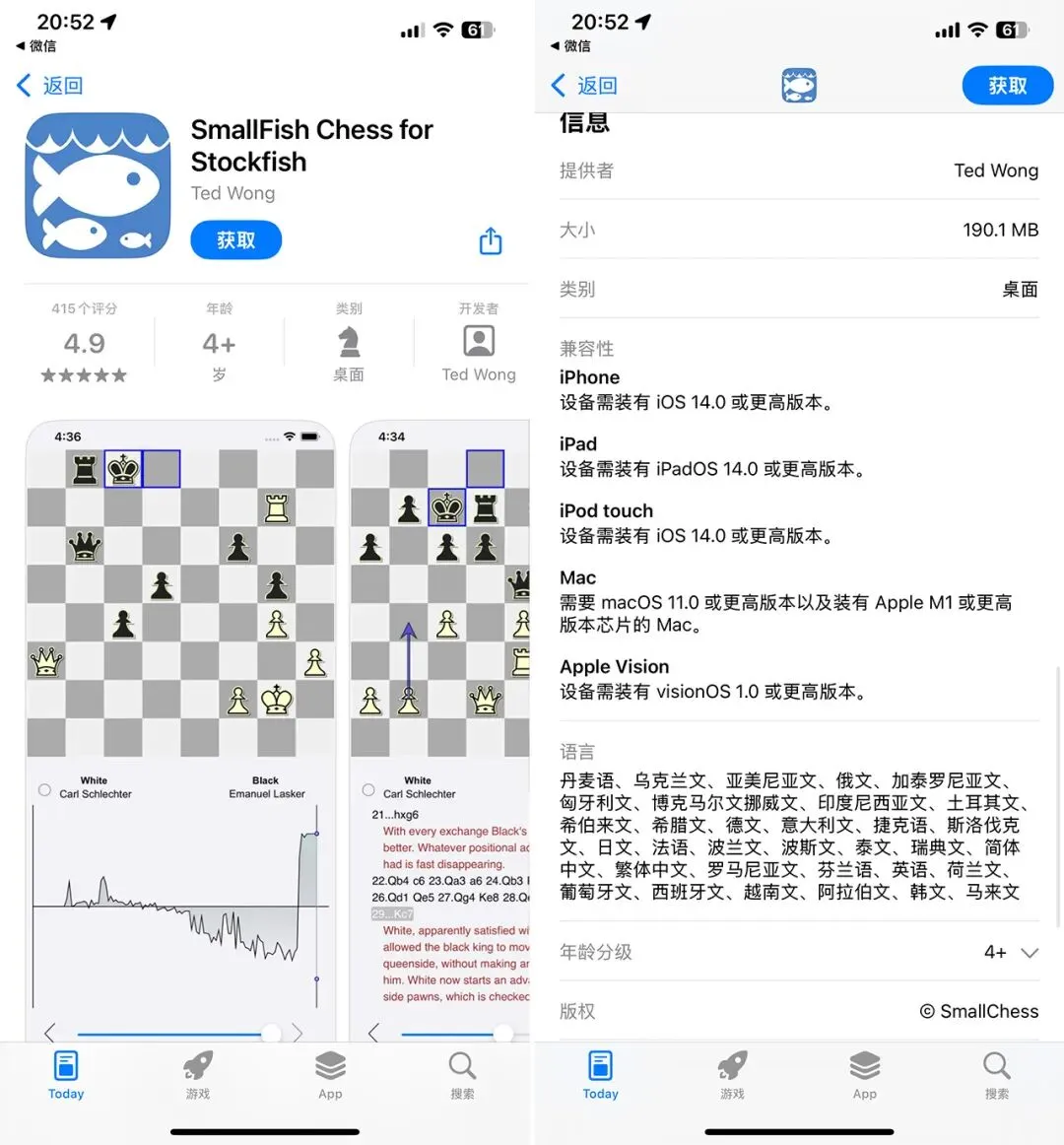 介绍:一款专业国际象棋分析工具,集成世界顶级国际象棋引擎Stockfish,为不同水平的棋手提供强大的对弈和分析功能。