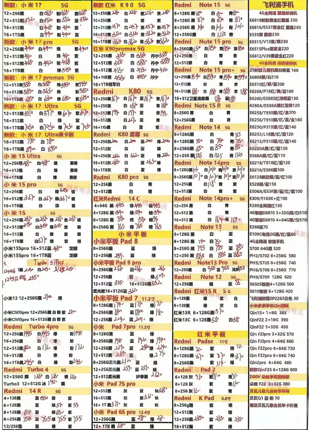 以下报价都是深圳华强北手机批发市场当天的最新批发价格(不含税),报价是我们的批发底价,零售拿货价格需加20~100元不等,京东包邮(量大价格可谈)