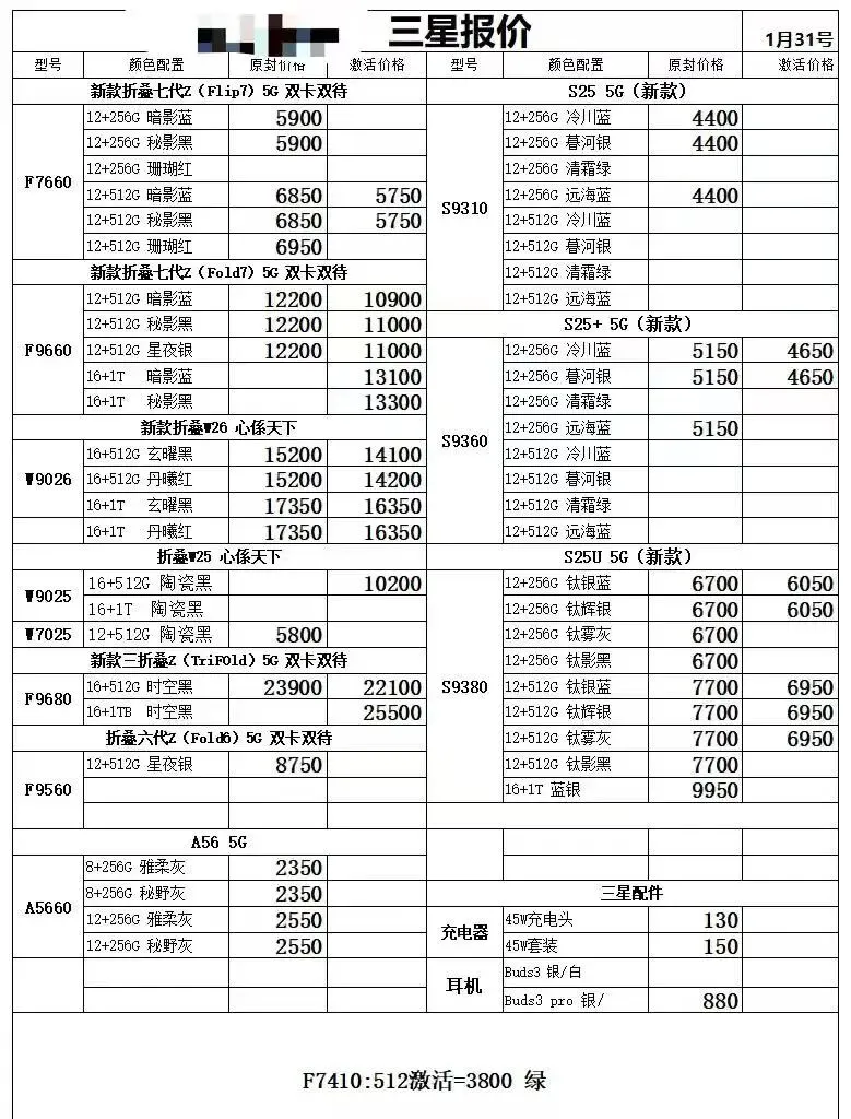 全新国行【港版/美版】三星手机报价
