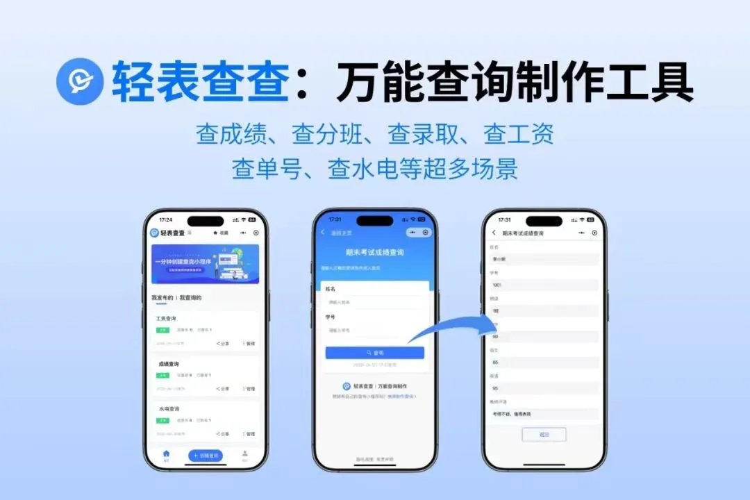 教育数字化转型持续推进,教师需要的不是功能堆砌的平台,而是能直接解决“上传即发布、发布即可用、可用即安全”的工具。目前已有5款免费工具被一线教师高频使用,覆盖不同技术基础与发布场景。它们均支持Excel一键导入,1分钟完成查询系统搭建,家长无需注册,仅凭姓名学号(或手机尾号)即可查看本人成绩。