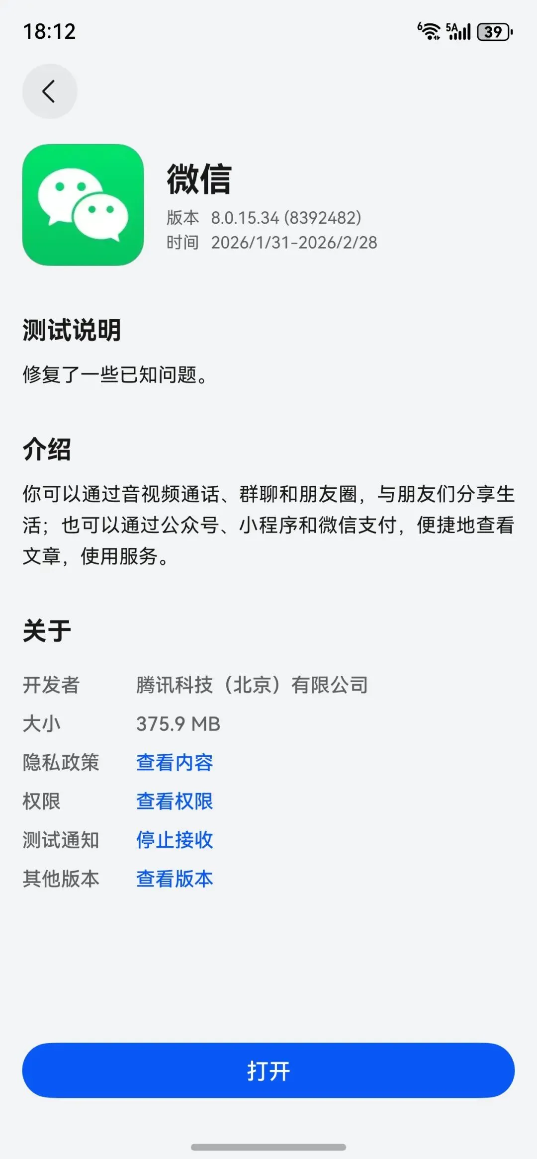 鸿蒙微信 8.0.15 版本上架应用尝鲜,意味着该版本已经开始公测,所有华为鸿蒙 5/6 手机用户都可以前往更新。如果现在没有在应用尝鲜专区看到,或提示测试人数已达最大数量,可稍后再试,预计该版本的正式版也将很快发布。