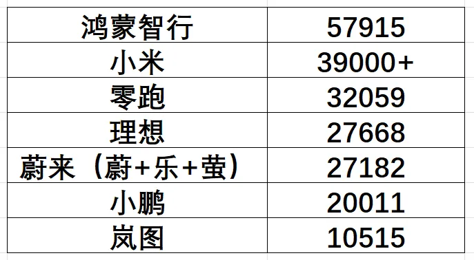 鸿蒙智行:57915辆(问界40016辆)(同比+65.6%,环比-35.3%)