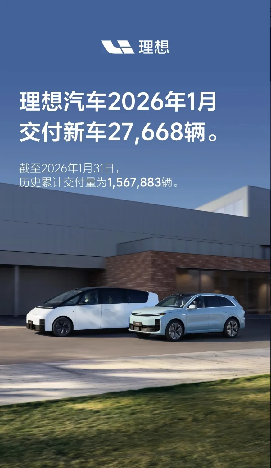 理想汽车:27668辆(同比-7.5%、环比-37.5%)