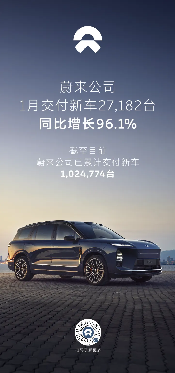 蔚来公司(蔚+乐+萤):27182辆(环比+25%,同比-43.5%)