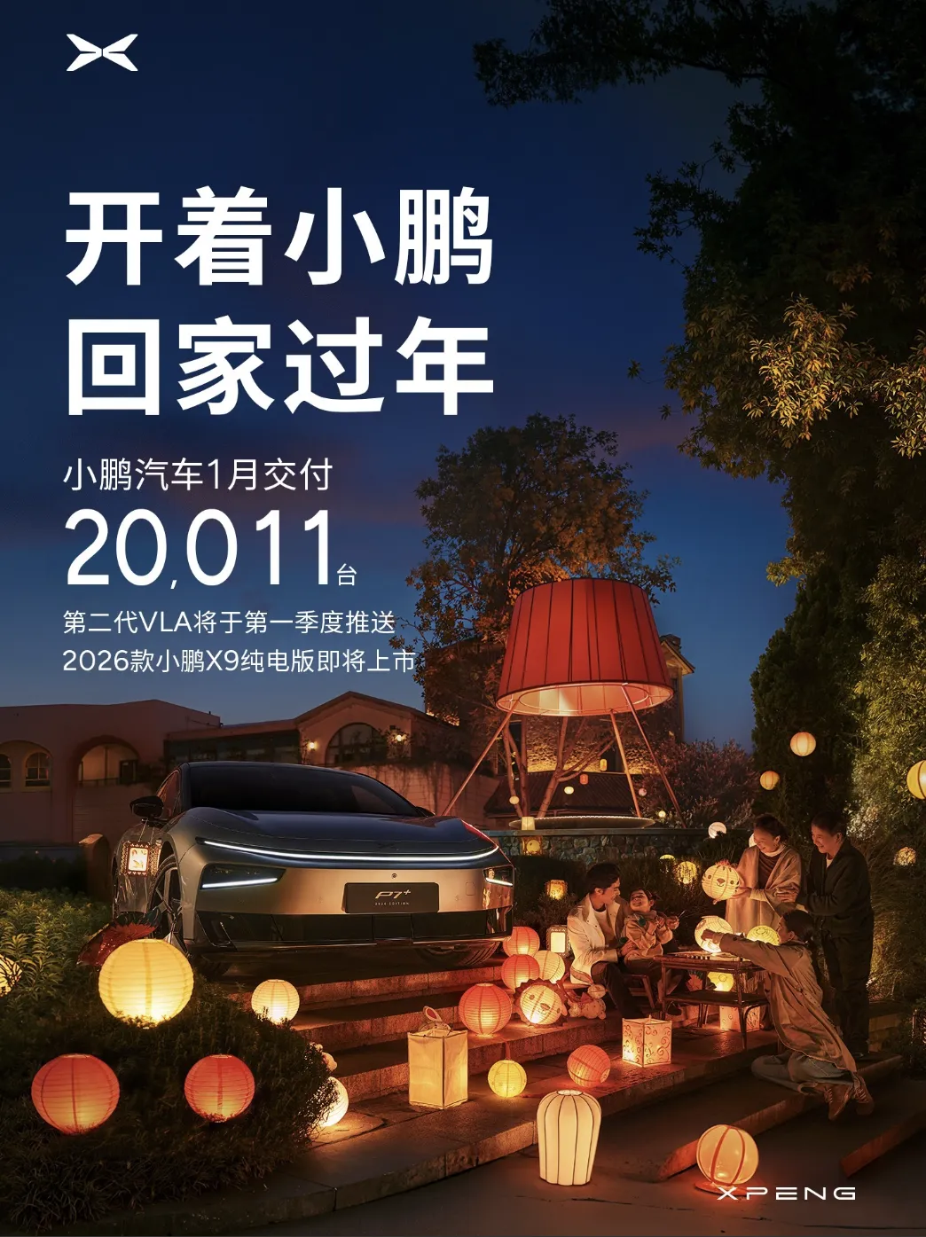 小鹏:20011辆(环比-35.4%,同比-34.1%)