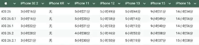 其他机型动静不大,iPhone 16多了12分钟,iPhone 12多了4分钟,iPhone SE2多了7分钟,这些数字放到真实使用里,很难让人立刻感觉到不一样,多数是测试波动范围,要不要升看你自己的节奏,换版本不该打乱工作安排。
