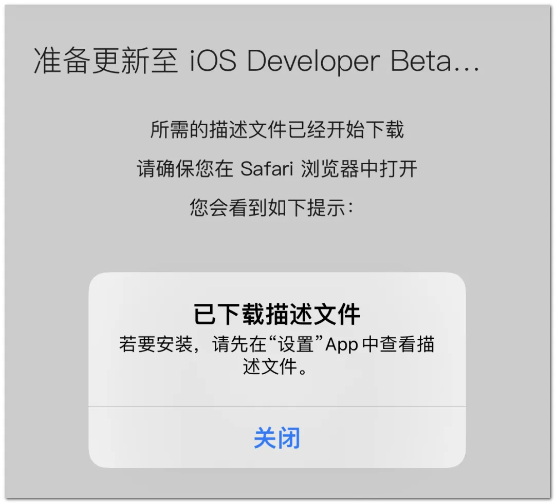 那么下面就以系统测试版本测试版描述文件为例演示具体的安装方法、步骤。