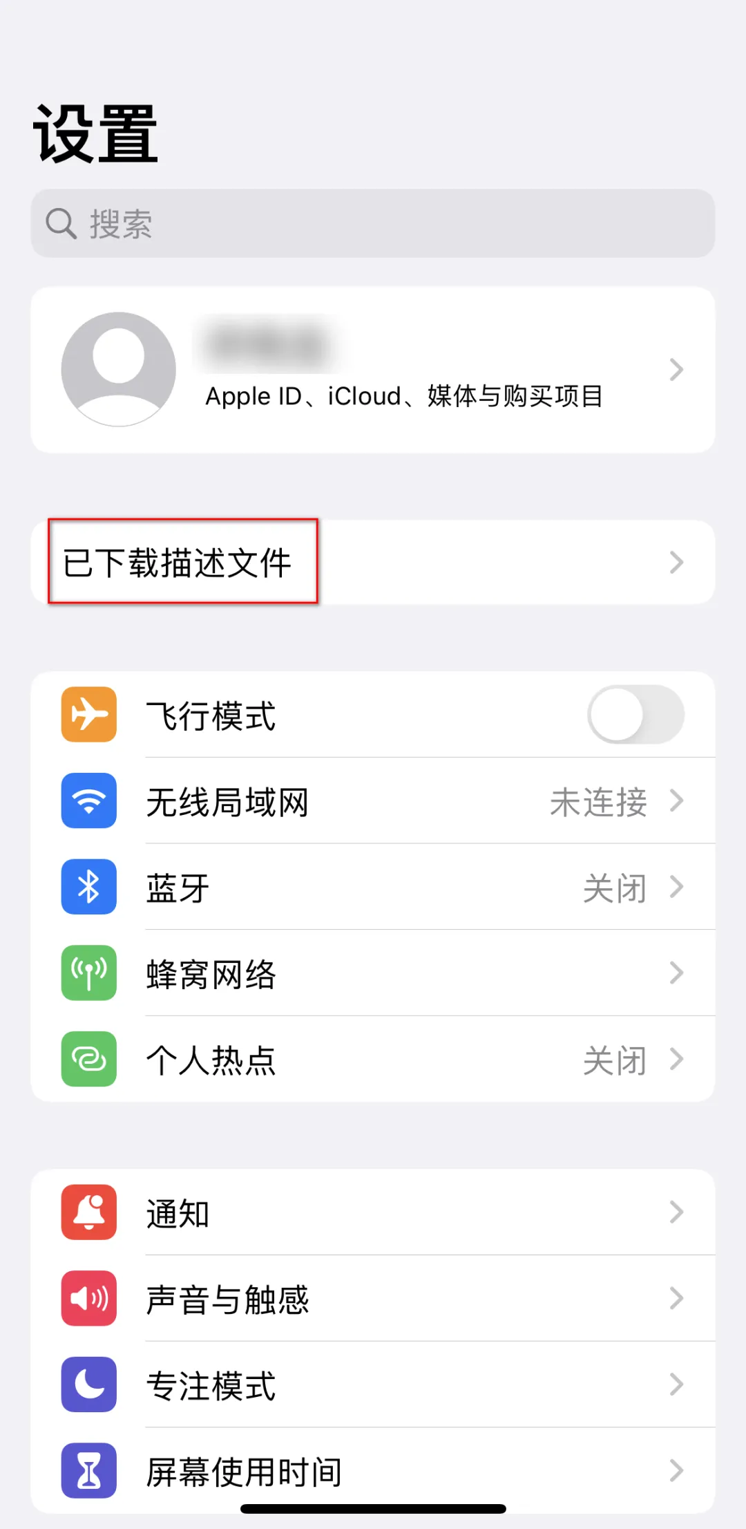 打开苹果手机或者iPad设置,查看【已下载的描述文件】