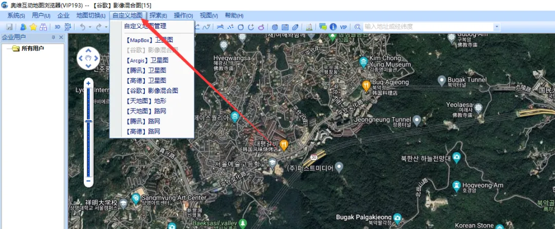 然后点击自定义地图,就可以选择自己想用的图源啦,什么美国、小日子,澳大利亚,加拿大都是可以看的,画质感人,堪比实拍。