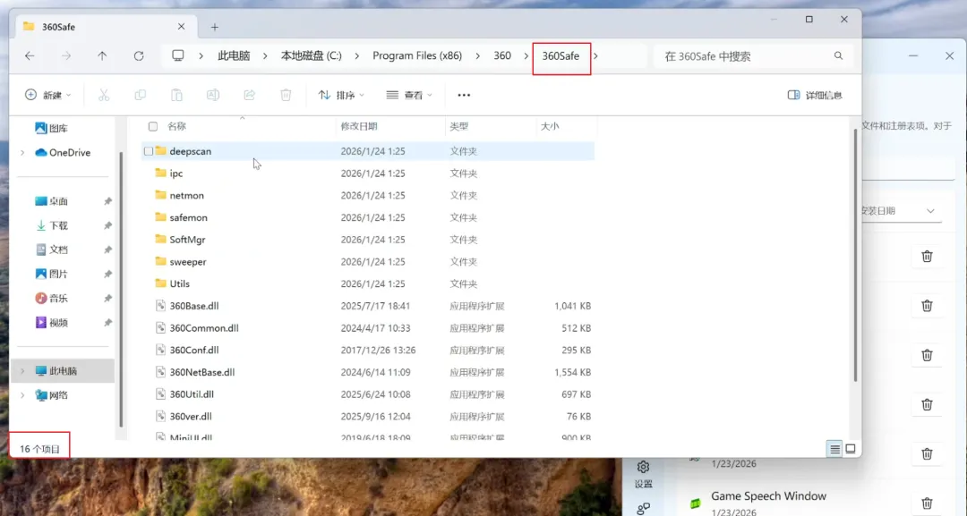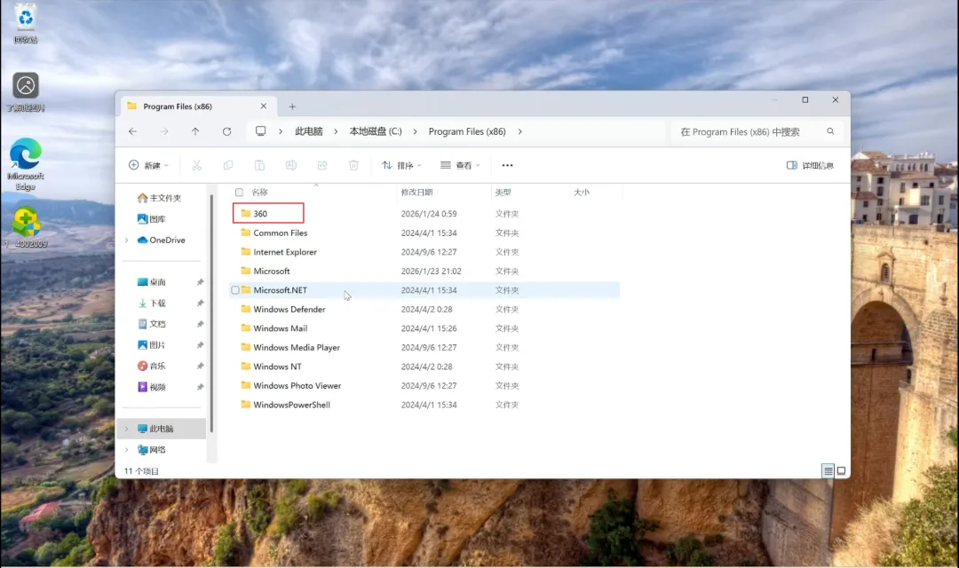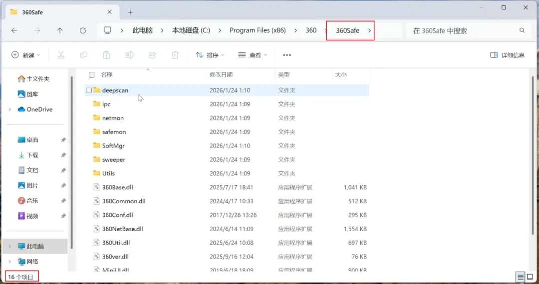 这里用本次测试目标360安全卫士进行举例,它通常安装在 C:\Program Files (x86)\360目录下。如果卸载后这个文件夹还在,并且里面还有内容,那就说明没有卸干净。