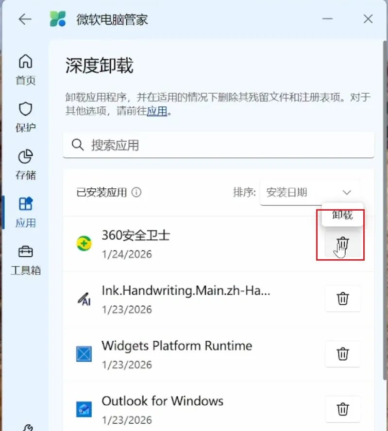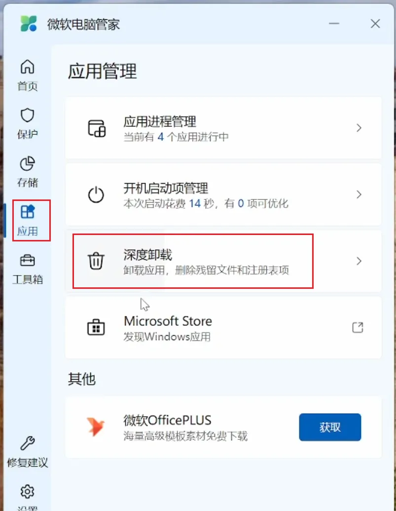 2、微软电脑管家深度卸载:微软官方的增强工具