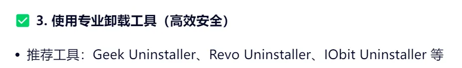 评价:有所改善但仍不彻底。比前两种方法有进步,清理了部分残留,但主要安装目录仍未彻底清除干净。