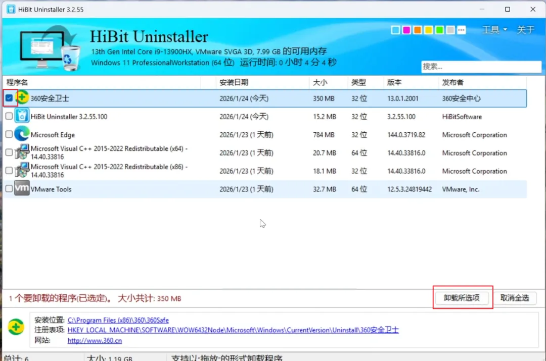1、HiBit Uninstaller:360安装目录完全删除 ✅