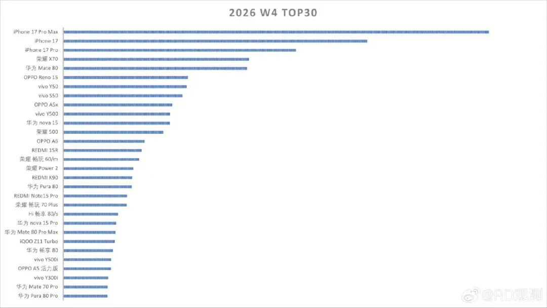 从整份榜单不难看出,出货量最好的国产手机往往是那些售价更加亲民且性能表现相对一般的中低端机型;至于那些定位中高端的高性能机型或者旗舰手机,似乎也仅有华为旗舰和红米 K90 冲进榜单前三十名。