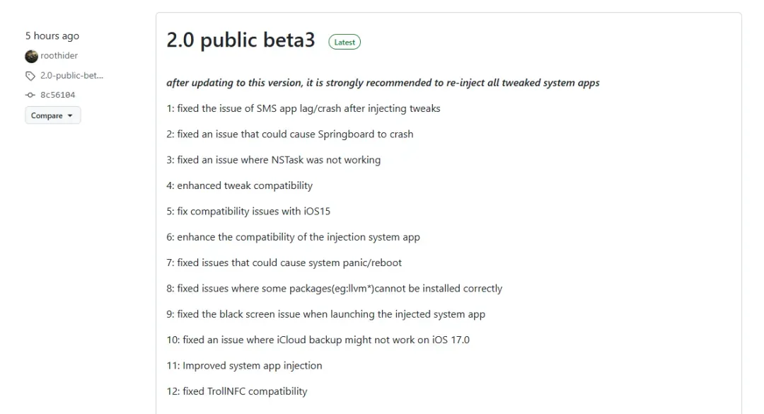 在昨天,Roothide 开发者针对 Bootstrap 半越狱工具更新,推出 2.0 beta 3 内测,随后!国内真皮开发者迅速同步更新,添加一些挂载功能以及修补一些内容,让挂载功能更加的稳定使用。