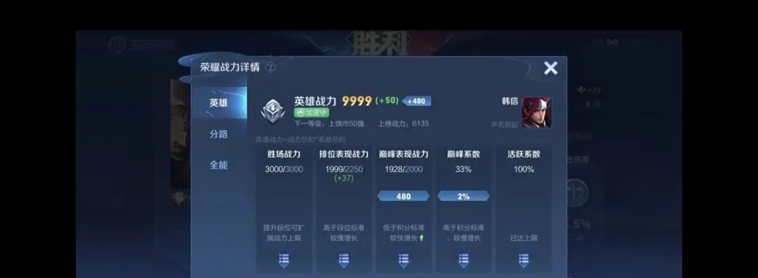 比如这个图片的战力:总战力=(3000+1999+1928+480)*(35%+100%)=9999.45。由此可见,巅峰赛系数真的太重要了。所以想想拿到市标,甚至更高的标,就需要每周5,每周6,去打巅峰挑战赛。