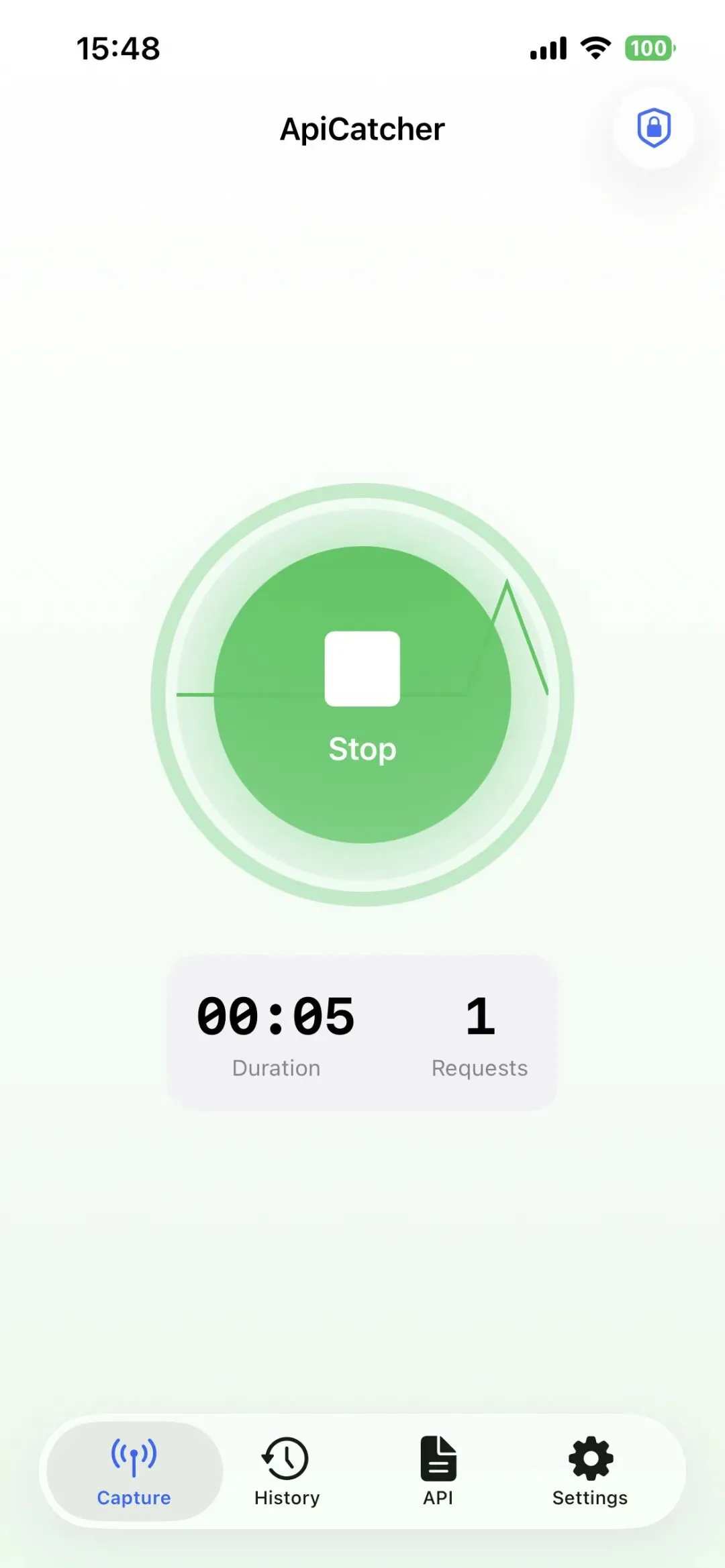 开始抓包就不能改各种配置了,所以把界面收拾干净,换开始后的关注数据。通过运行时间和抓到的请求数来反馈给用户。(支持后台抓包的,干掉进程重新进入计时和抓到的请求数据都会恢复)
