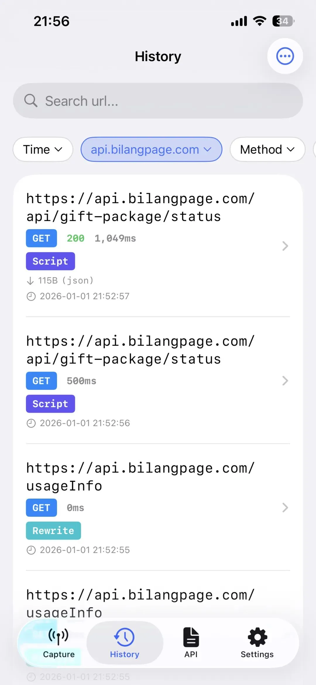 其次,抓包历史页面显示抓到的数据包,不管是哪一次抓的,什么时候抓的,在这就能找到,不需要先找到是哪次抓包任务抓的。因为抓的次数多,想找之前抓的一个接口,很难找。