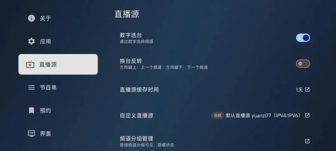 这里我们点击自定义添加直播源