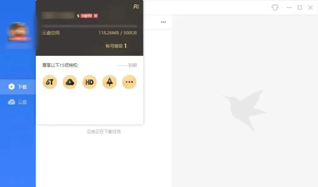 这是一款PC端最新版本,一打开看到的是这个画面,那就是SVIP会员了!软件安装好打开,可以不登录,老陈在这里选择了用手机号登录,是为了同步之前的记录,进去之后可以看到自己的历史任务!整个界面非常干净简洁,功能极尽精简,只有两个功能是“下载”和“云盘”!点进下载的页面,打开“查看我的特权”,尊贵的“超级会员”图标非常显眼!