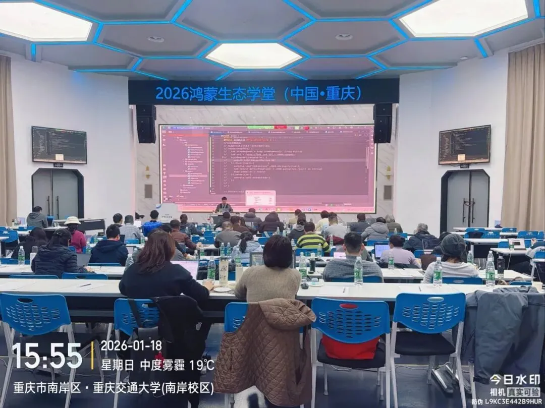 1月17日,培训开班仪式在重庆交通大学举行。重庆交通大学信息科学与工程学院院长杨建喜在致辞中表示,鸿蒙操作系统作为新一代智能终端操作系统,已成为推动数字经济创新的关键力量。他强调:“本次培训为高校教师提供了与产业接轨的宝贵机会,将助力院校构建更完善的HarmonyOS技术教学体系,培养更多适应未来科技发展的复合型人才。”