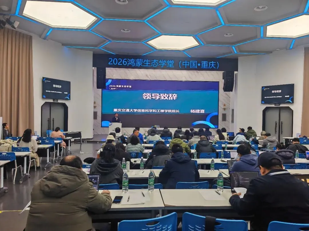 1月17日,培训开班仪式在重庆交通大学举行。重庆交通大学信息科学与工程学院院长杨建喜在致辞中表示,鸿蒙操作系统作为新一代智能终端操作系统,已成为推动数字经济创新的关键力量。他强调:“本次培训为高校教师提供了与产业接轨的宝贵机会,将助力院校构建更完善的HarmonyOS技术教学体系,培养更多适应未来科技发展的复合型人才。”