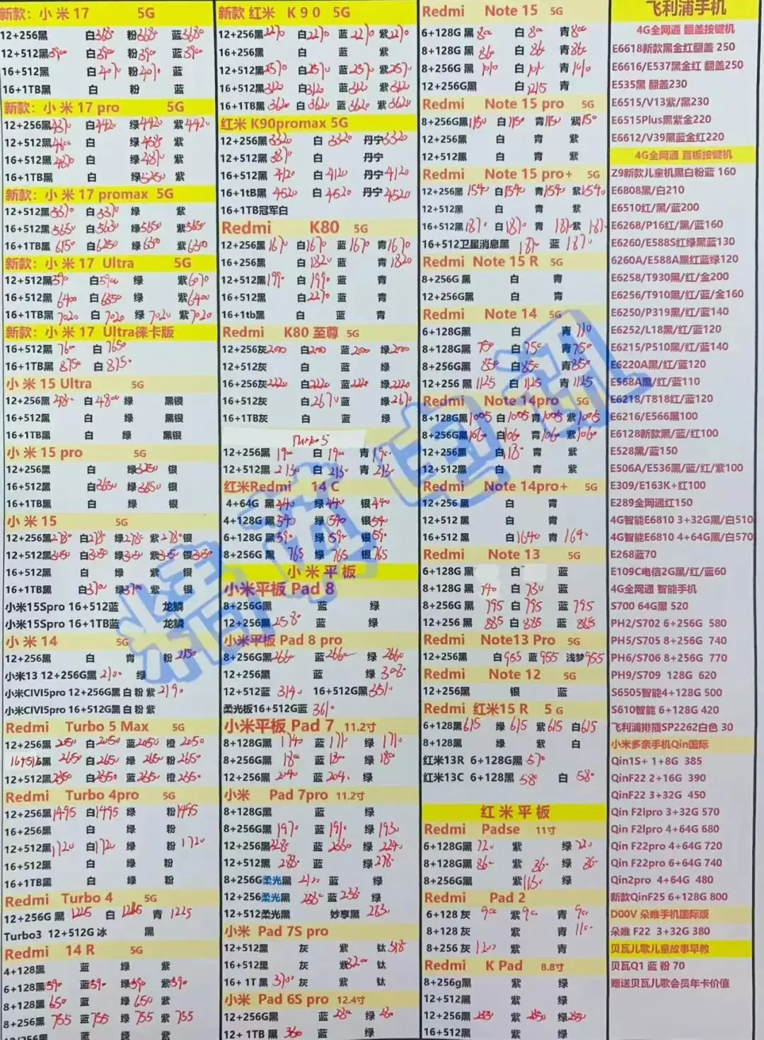 以下报价都是深圳华强北手机批发市场当天的最新批发价格(不含税),报价是我们的批发底价,零售拿货价格需加20~100元不等,京东包邮(量大价格可谈)
