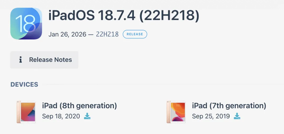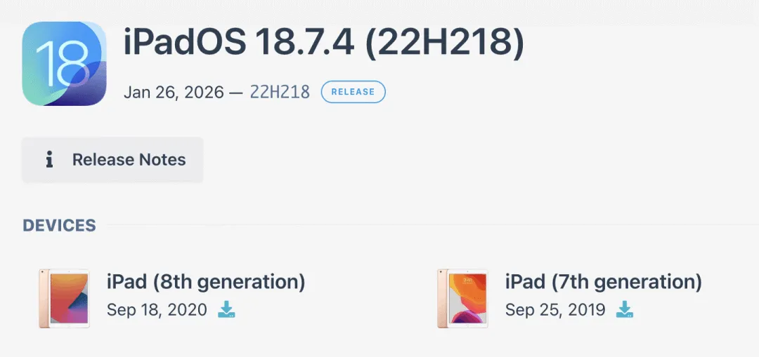 最近有国外网友发现苹果悄悄给 iPad 8 开通了 iPadOS 18.7.4 的降级通道,意味着如果你的 iPad 8 不小心升级了 iPadOS 26 系统,真的可以降级会 iPadOS 18。