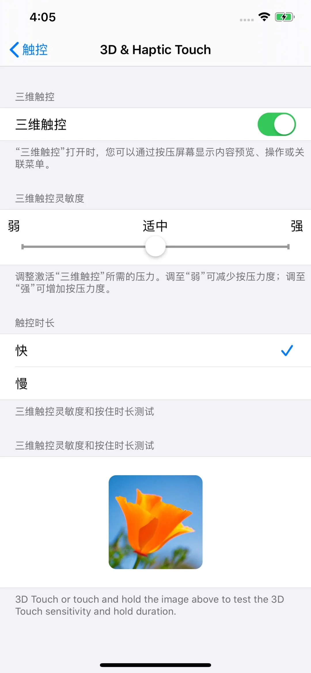 菜单中的名称变为“3D & Haptic Touch ”,应该是还没汉化的缘故。