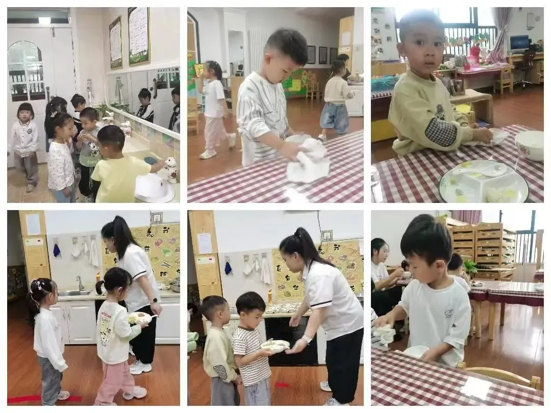 那些托班的老生,早就养成了良好的习惯,他们成了餐桌上的“小榜样”,主动提醒身边的小伙伴:“不要撒饭哦”“青菜也要吃,吃了身体棒”。渐渐地,用餐时间的教室变得井然有序。孩子们端端正正地坐在小椅子上,左手扶碗,右手拿勺,认真地吃着每一口饭菜;挑食的孩子开始尝试以前不爱吃的蔬菜,撒饭的孩子也能把桌面收拾得干干净净。看着孩子们一张张干干净净的小脸,和一个个空空的饭碗,我和两位老师的心里,满是暖暖的成就感。不止是午餐,喝水、洗手、排队、整理玩具,孩子们都从最初的手忙脚乱,变得有条不紊。向日葵班,就像一个慢慢步入正轨的小列车,朝着阳光的方向,稳稳前行。