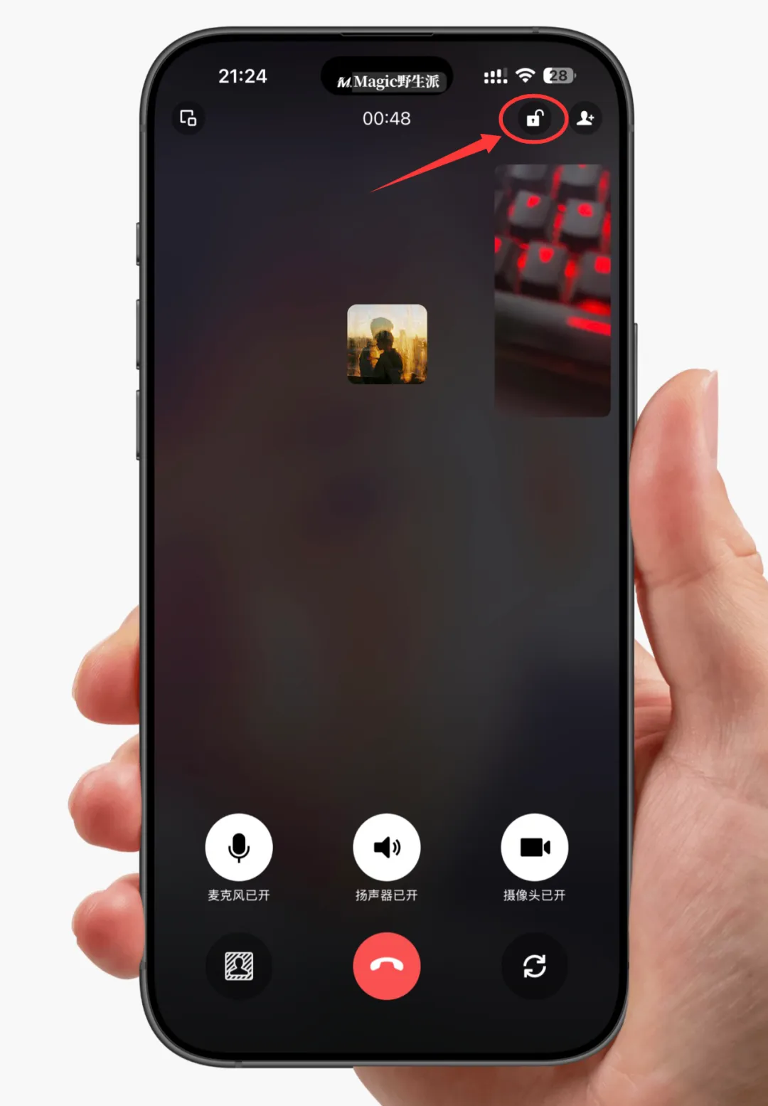 目前锁定功能只有在视频通话里有,语音通话界面暂时还没有发现;另外该功能处于灰度热更新。