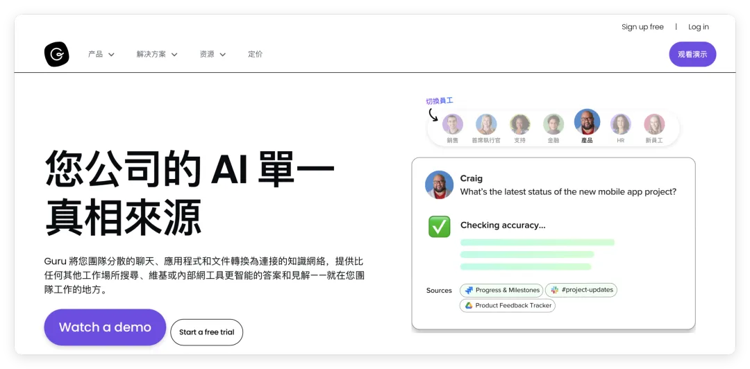 Guru是一个与您工作流程相匹配的公司知识库,因此您可以组织信息并从任何地方访问它。它将信息分类为集合、看板和卡片,让用户能轻松找到知识。