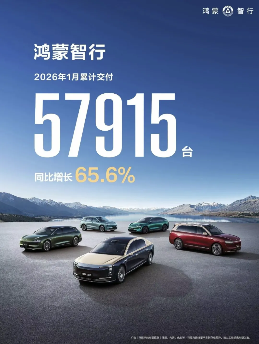 先看领先阵营,鸿蒙智行直接断层登顶,1月交付57915辆,同比大涨65.6%!
