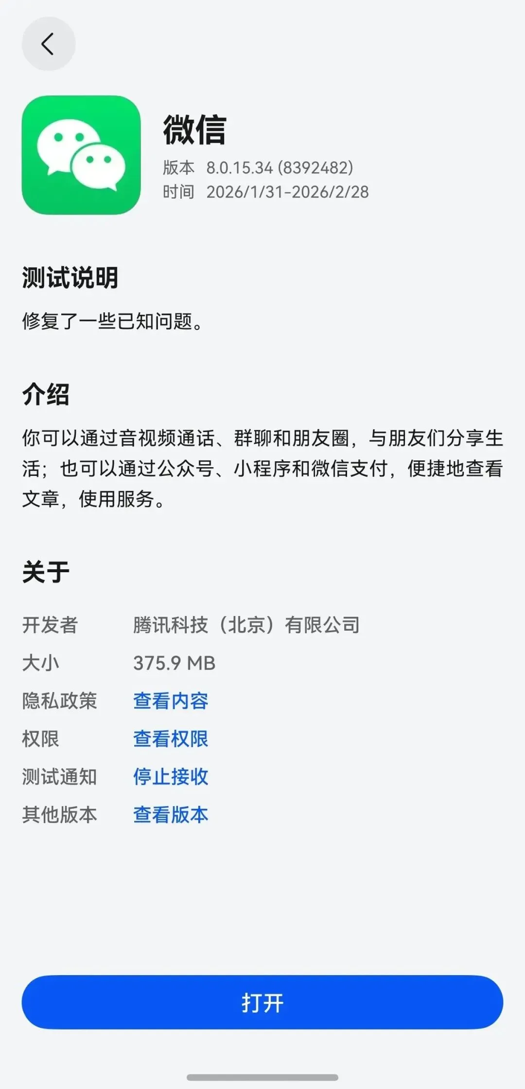 前几天,微信团队开始鸿蒙微信 8.0.15 版本邀请测试,今天该版本已经上架鸿蒙应用市场应用尝鲜,这是一次堪称史诗级更新,基本对齐了安卓和 iOS 微信主要功能。
