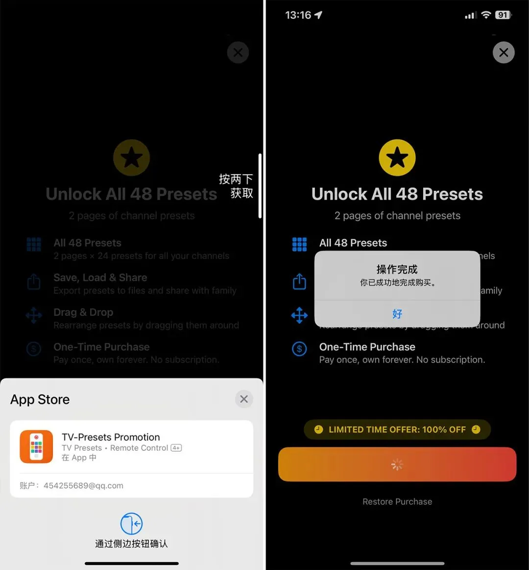 - 限免获取的内购,可以随时通过软件内的【恢复购买】重新免费获取。