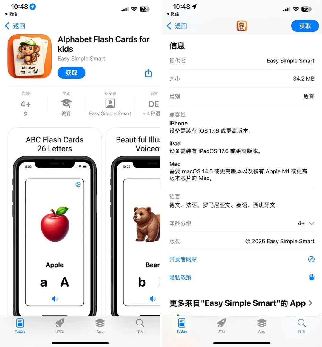 介绍:一款幼儿字母学习应用,提供大小写字母闪卡、彩色配图与多语言发音(英 / 德 / 法等),通过视听结合培养阅读基础与词汇量,适合学龄前儿童。价格:¥8→0