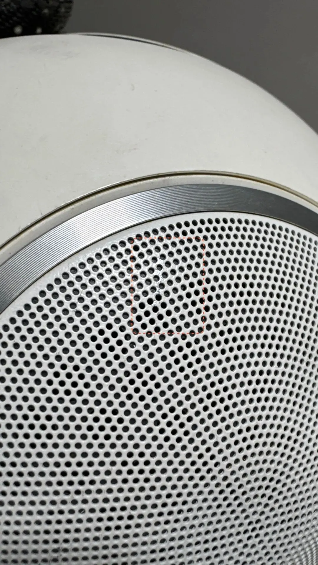 两侧是圆形的扬声器开孔,背面能看到镜头和极简的接口,底部有一圈防滑胶垫。