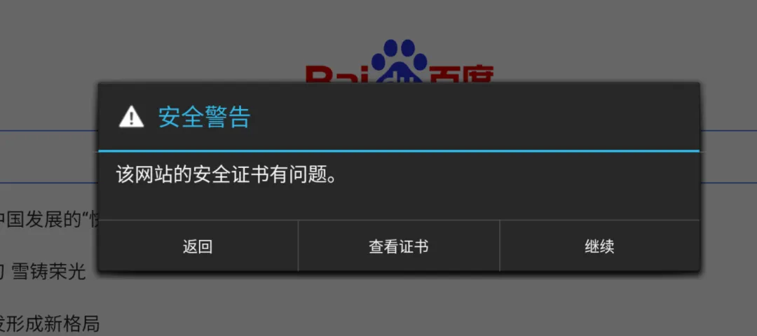 这个时候我们打开MuMu模拟器配置模拟手机配置代理点击右上角的编辑进行修改,这里ip改为你们本机的ip,我这里是我自己的本机ip然后这里我们需要打开浏览器,输入 http://burp这里我们点击文件进入download路径右键将证书重命名为cer结尾(部分手机需要)成功安装证书 然后我们继续打开浏览器,访问百度看看我们这里可以看到虽然能抓到包,但浏览器会弹出 “安全警告”。痛点 : 这种方法在 Android 7.0+ 系统上,很多 App 会直接拒绝连接,因为它们不信任用户手动安装的证书。这就需要进入下一章:进阶篇。# 1. 格式转换openssl x509 -inform DER -in cacert.der -out cacert.pem# 2. 计算Hash (记下输出的类似 9a5ba575 的值)openssl x509 -inform PEM -subject_hash_old -in cacert.pem