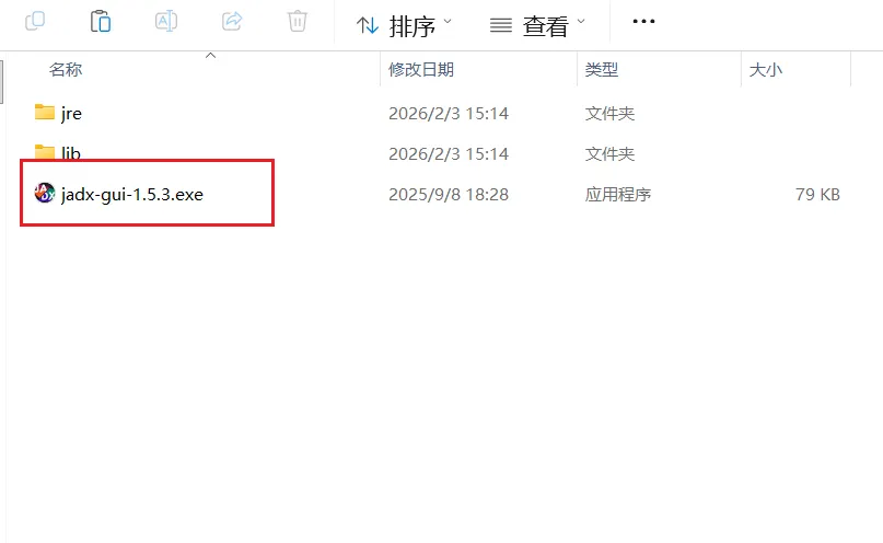 2. 解压文件:下载下来的通常是一个 zip 压缩包,找个没有中文路径的文件夹解压它(这里我下载的是jadx-gui-1.5.3-with-jre-win.zip)