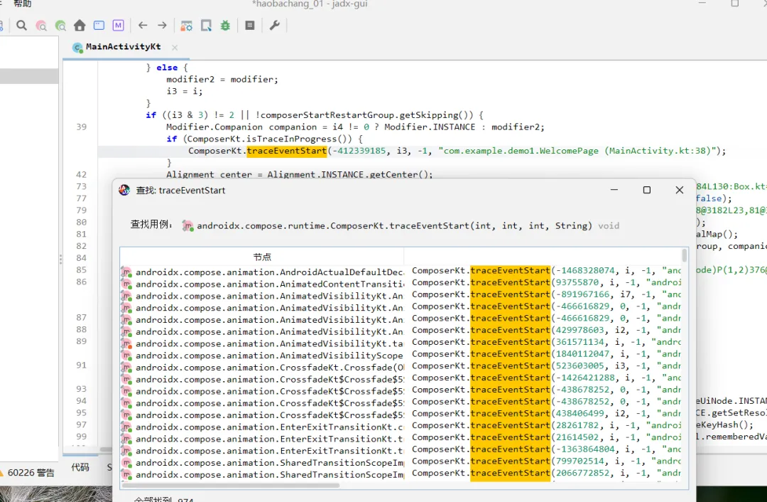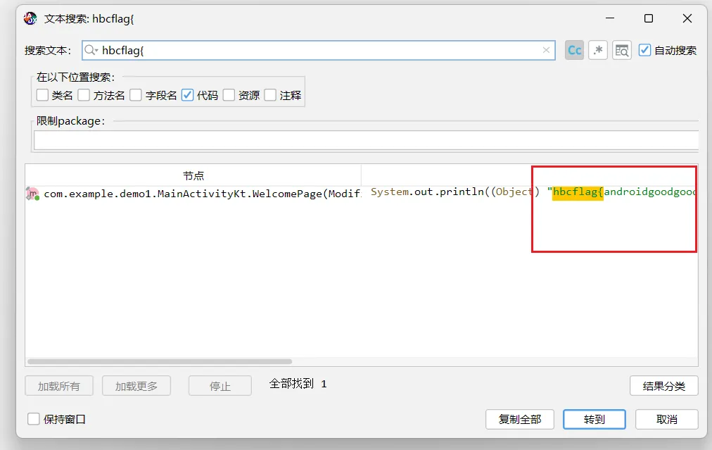 3. 搜索大法 (关键!)在做 CTF 题目或分析 App 时,我们不可能从头读到尾。我们需要定位关键信息。