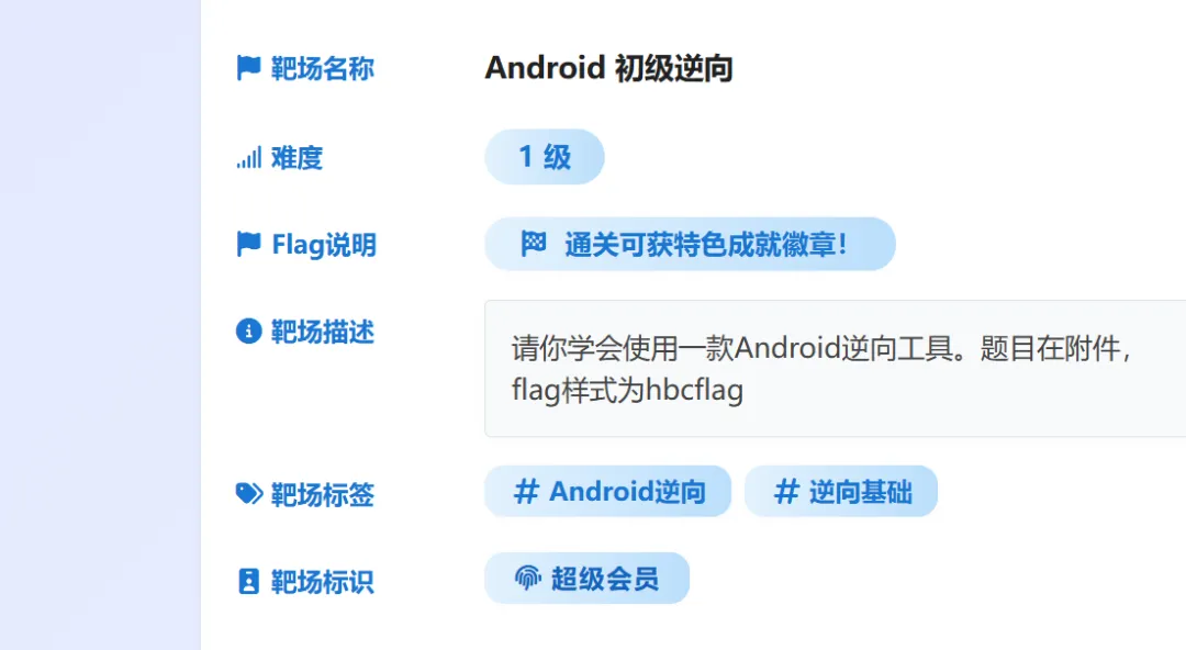 🔗入口:http://www.loveli.com.cn/有宝子就问了,主播主播,这么好的靶场怎么用:首先关注好靶场 然后发送bug,可以点击链接直接登录找到个人中心,邀请码输入3e5adb8a55db48b8,白嫖14天高级会员。关注好靶场bilibili。拿着关注截图找到客服,领取5积分或者7天高级会员。光说不练假把式。接下来,我们结合一个具体的 CTF 靶场案例,带大家实际操作一遍。这个题目虽然定位是 Level 1,但它非常典型地展示了 JADX 在实战中的威力。🔗靶场链接:http://www.loveli.com.cn/see_bug_one?id=659这里根据题目,flag为hbcflag开头,我们直接点击放大镜搜索通过今天的实战,相信你已经感受到了 JADX 的强大。对于初级逆向题目,“拖入 JADX -> 全局搜索 -> 分析逻辑” 这一套连招往往能通过 90% 的关卡。
