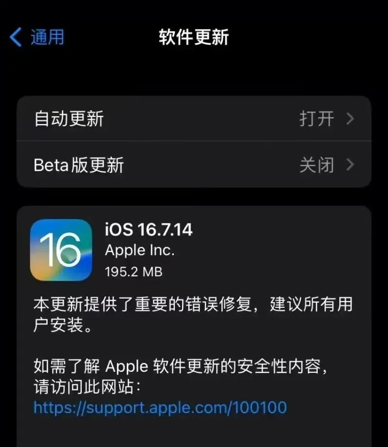 iOS 16.7.14 正式版
