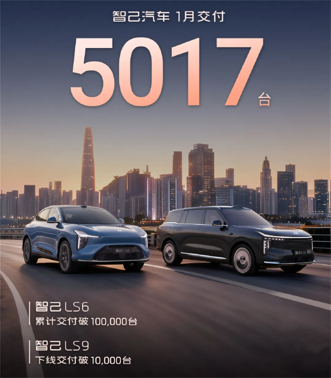 智己汽车1月有点“掉链子”,5017台的交付量,和去年9-12月连续破万的表现相比差了不少。不过好在它的两大爆款底子还在,LS6累计交付破10万,LS9下线交付破1万,这两款车仍是销量主力。