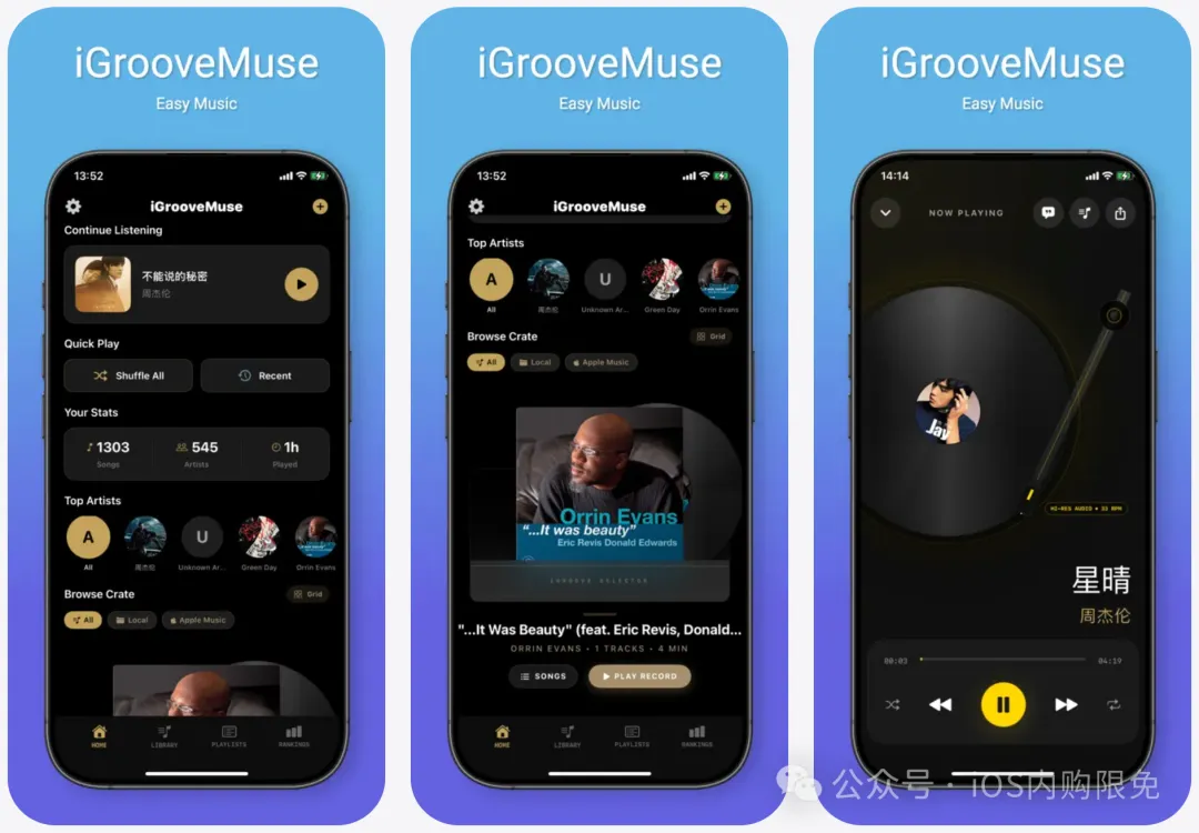 简介:一款提供黑胶、磁带、CD和随身听四种复古界面的播放器,支持无缝导入本地音频与同步Apple Music。