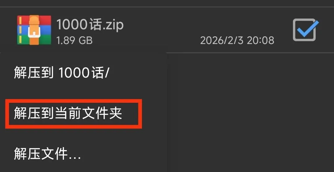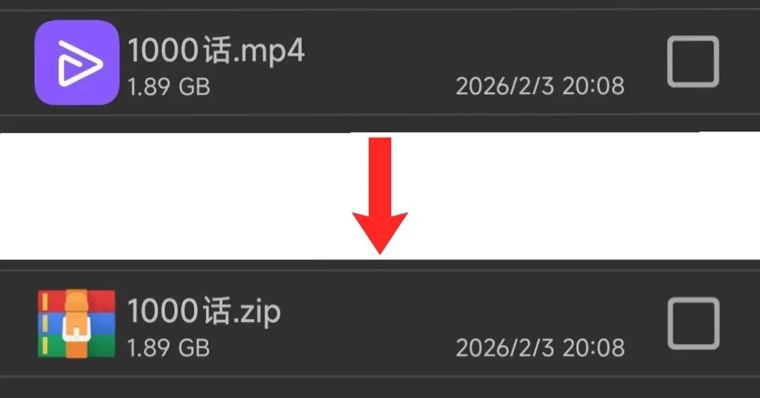 4.长按文件重命名,将.mp4改为.zip