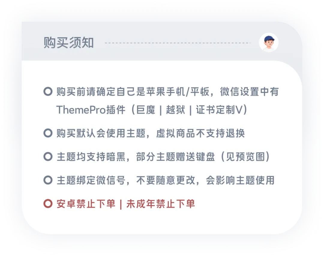 未购买主题的ios用户可以选择单独购买键盘,或者购买微信主题会赠送键盘